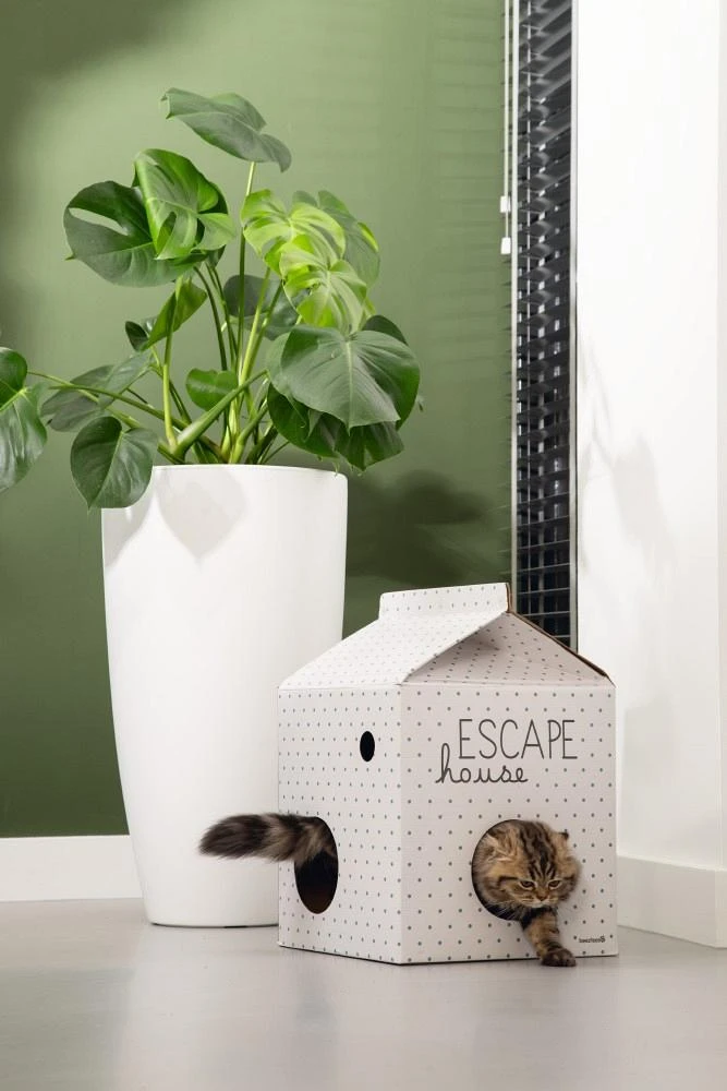 Het Beeztees Kittenhuis Escape kan eenvoudig in elkaar worden gezet en is voorzien van meerdere gaten. Er is geen gat in de achterzijde gemaakt, zodat jouw kitten niet het gevoel heeft dat er aan de achterkant ook iets gebeurd wat hij of zij in de gaten moet houden. Het huisje heeft ook meerdere kijkgaten, zodat hij zijn omgeving kan scannen. Zet het huisje op een prettige plek in huis, zodat jouw kitten er heerlijk kan genieten van een welverdiend dutje.