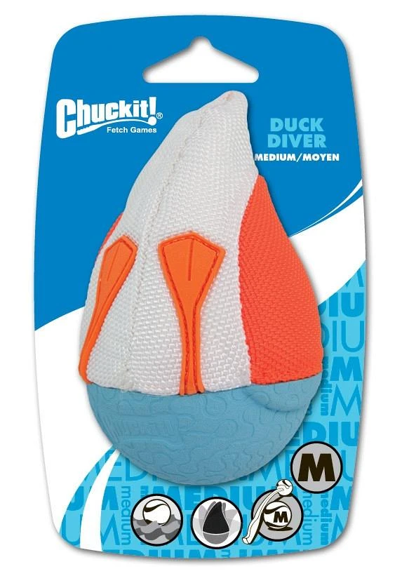 Chuckit! Amphibious Duck Diver M is drijvend speelgoed. Dit speelgoed is speciaal gemaakt voor honden die gek zijn op water en graag speelgoed uit het water apporteren. Perfect voor aan het strand, bij een meer of zwembad.