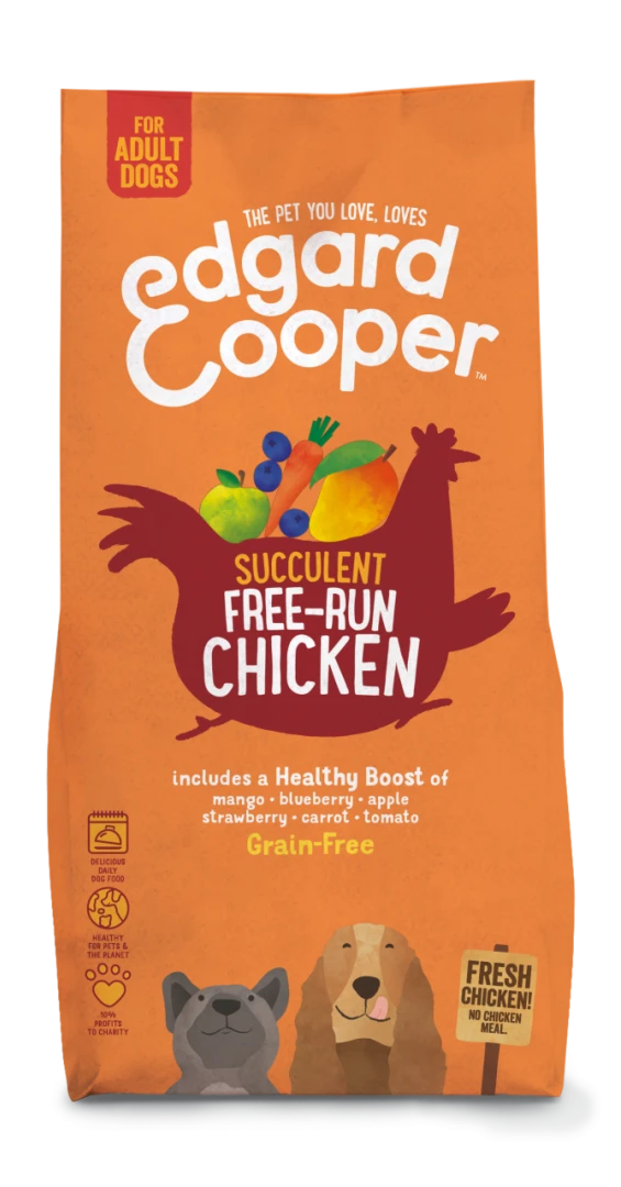 In Edgard & Cooper hondenvoer Adult scharrelkip wordt enkel verse scharrelkip gebruikt en absoluut geen bewerkte, overgare of gedroogde kip of kippenmeel dat moeilijker is voor de buikjes om te verteren. Daarnaast wordt er een supergezonde mix van fruit, groenten en kruiden toegevoegd.