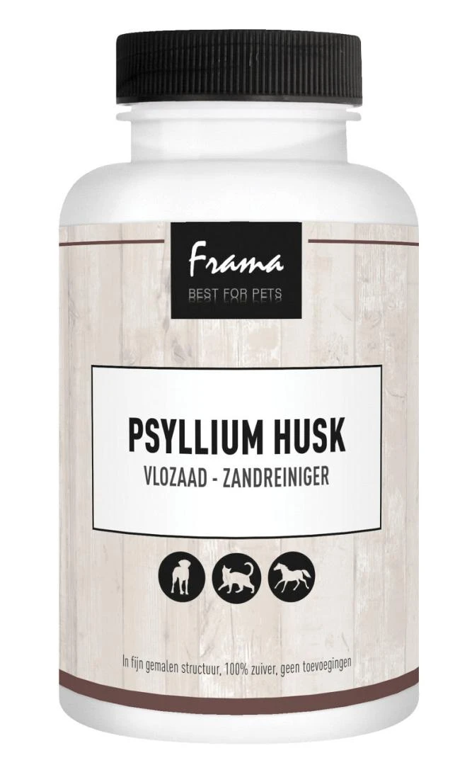 Frama Best For Pets Psyllium Husk Vlozaad Zandreiniger bestaat uit vlozaad. Vlozaadvezels hebben de eigenschap vocht aan te trekken en hierdoor massa zacht te maken of juist te binden. Het bezit een hoog slijmvliesgehalte en bindt hierdoor het in de darm aanwezige zand (vooral bij paarden, het zogenaamde zandkoliek) en heeft op deze manier dan ook een reinigend effect. Het is een 100% puur en natuurlijk product van hoge kwaliteit.
