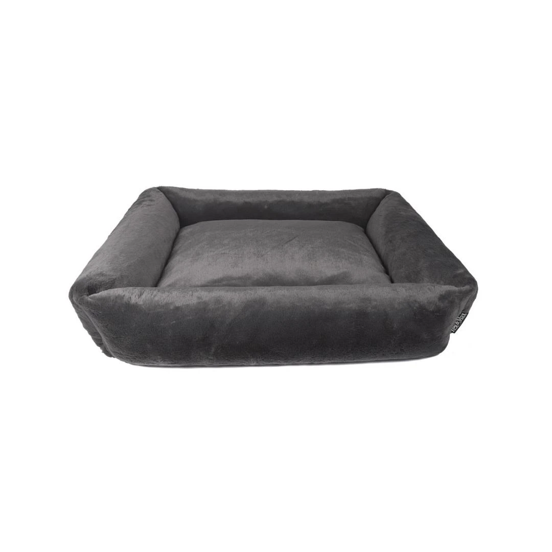 “De Lex en Max hondenmand Nicosia is heerlijk zacht, warm en ongelooflijk aaibaar. De mand heeft stevige opstaande wanden die zo gevuld zijn dat de hond er heerlijk tegenaan kan liggen of zijn kop er op kan laten rusten zonder dat het inzakt. De mand kan rechtstreeks op de grond worden geplaatst en zal daar fungeren als lekkere loungeplek voor jouw viervoeter.