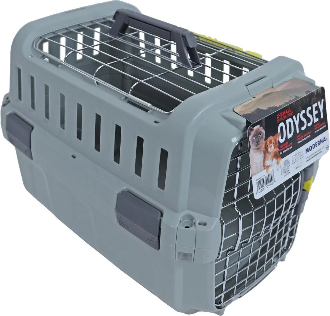 De Moderna reismand Odyssey is ruimtelijk, stevig en veilig. De hoogte van deze reismand en de vele openingen geven jouw huisdier een minder opgesloten gevoel en vermindert daardoor het stressniveau tijdens het transport. De grote bovenklep zorgt voor eenvoudige belading van de reismand. De stevige deur heeft een meerpuntssluiting welke een vergrendelfunctie heeft. Het geïntegreerde, opklapbare, zachte handvat zorgt voor extra draagcomfort tijdens het transport.