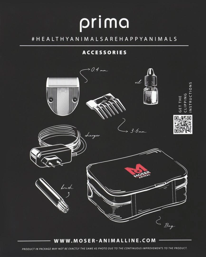 Moser tondeuse Prima is een handzame, oplaadbare tondeuse voor het gedetailleerd scheren van bijvoorbeeld de oren, poten en het gezicht bij kleine, middelgrote en grote honden.
