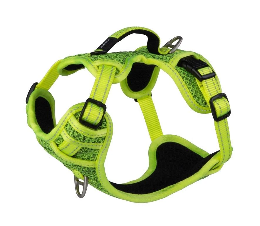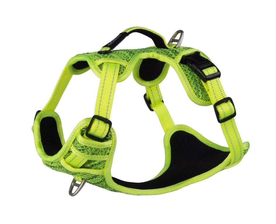 Duurzaam hondentuig met reflecterend stiksel voor een betere zichtbaarheid in het donker.