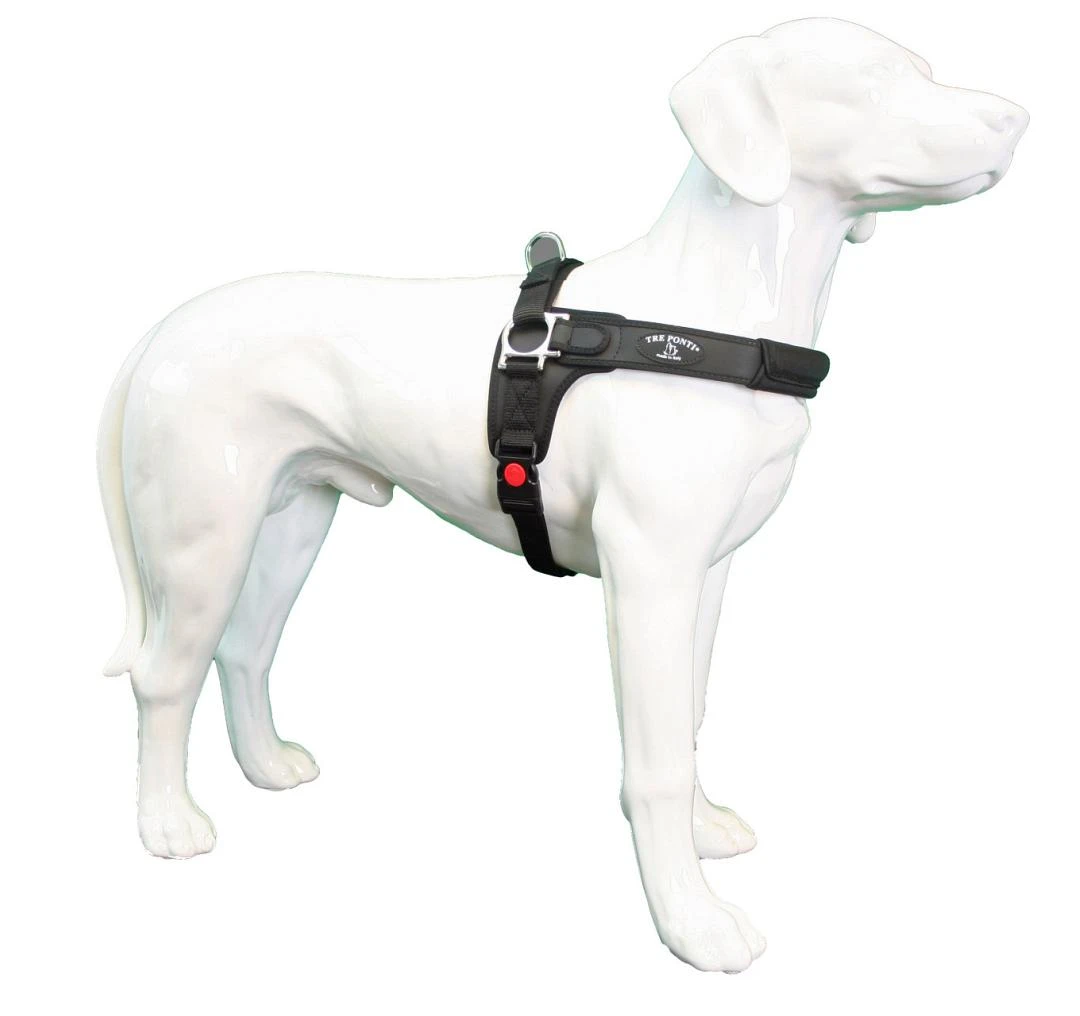 Het bijzonder innovatieve ontwerp geeft de hond een ruime bewegingsvrijheid, zoals bij alle Tre Ponti tuigen. Het tuig heeft geen negatieve drukpunten, echter bij het strekken van de lijn krijgt de hond een pijnloze en lichte druk op de zijflanken. Dit zal bij elke hond een reactie uitlokken. De hond zal meteen inhouden, of stil blijven staan en naar u omkijken om te zien wat er aan de hand is. Door deze reactie te belonen kan het vervelende trekken van de hond beheersbaar worden en met de juiste aanpak zelfs volledig worden afgeleerd. Â Deze bijzonder innovatieve tuigen zijn sterk en reiken u de ’tools’ aan om negatief gedrag, het trekken en uitvallen aan de lijn, op een eenvoudige wijze te kunnen doorbreken en/of te beheersen.